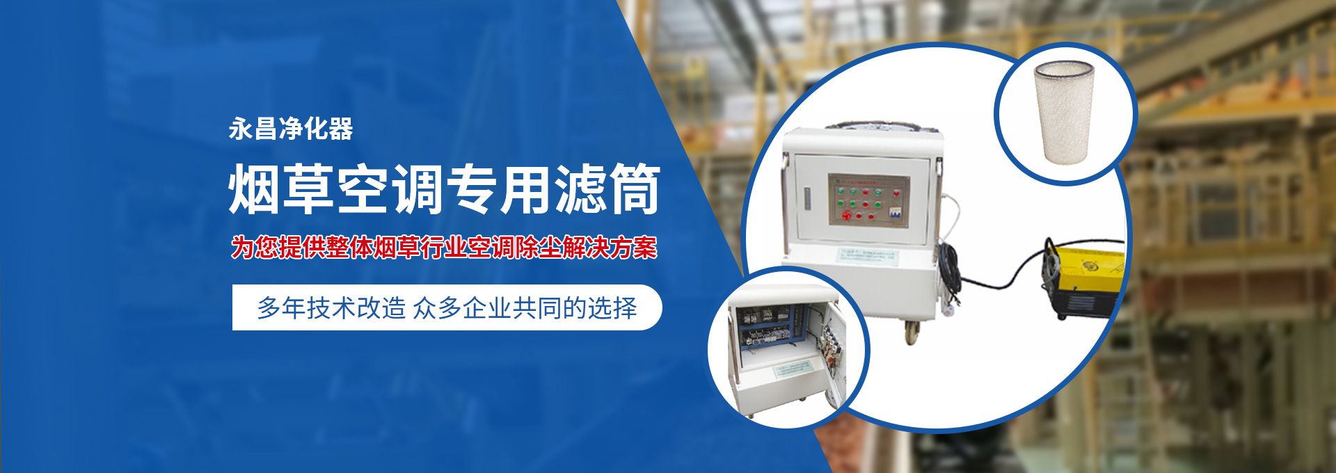 新鄉(xiāng)市永昌凈化器有限公司是生產(chǎn)煙草行業(yè)空調(diào)除塵專用濾筒的企業(yè)。注冊資金1000萬元。已通過ISO9001國際質(zhì)量管理體系認(rèn)證。對產(chǎn)品有嚴(yán)格的管理制度和售后服務(wù)。我公司以誠信、負(fù)責(zé)、守信譽、重質(zhì)量的精神所生產(chǎn)的產(chǎn)品,近幾年來在煙草行業(yè)受到廣泛應(yīng)用,并受到用戶的一致好評。 從一九九四年以來為煙廠的空調(diào)設(shè)備服務(wù)。十幾年來,我們不斷走出去請進(jìn)來學(xué)習(xí)新技術(shù)。定期到用戶那里咨詢情況:互相交流,認(rèn)真聽取寶貴意見,不斷提高產(chǎn)品質(zhì)量。從經(jīng)濟和安全,方便的角度出發(fā),根據(jù)煙廠濕度大的生產(chǎn)環(huán)境和濾筒收集到的含酸堿、氧化劑的粉塵。在空調(diào)箱工作狀態(tài)下我們頂著巨大的風(fēng)壓危險在箱內(nèi)停留了幾分鐘,認(rèn)真查看濾筒工作情況,發(fā)現(xiàn)濾筒有并死狀態(tài),造成濾筒不過濾、不過風(fēng)、壓差高的現(xiàn)象。經(jīng)幾十次試驗分析,在標(biāo)本兼治的原則下,有針對性的解決了這一問題。 我公司針對煙廠制絲、卷接包、混絲間、儲絲房、冷卻床、梗膨化等不同的生產(chǎn)環(huán)境,
